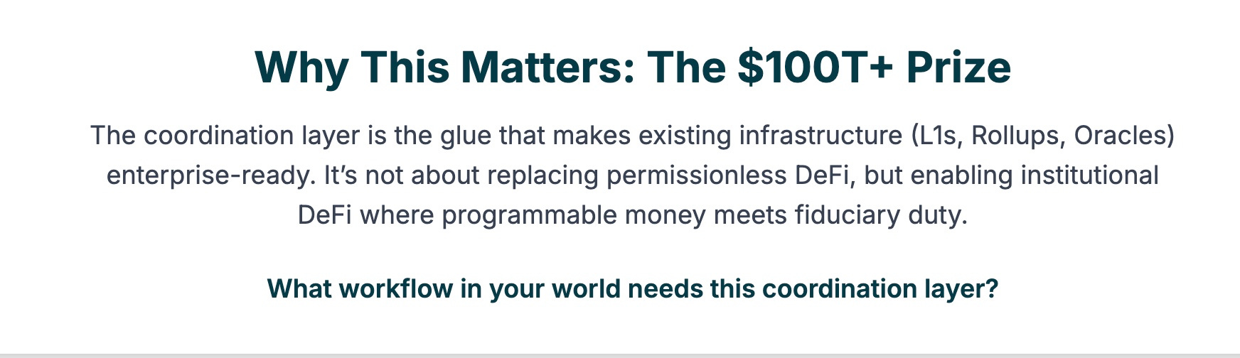 Why This Matters: The Trillion-Dollar Opportunity The coordination layer isn’t a shiny new blockchain - it’s the glue that makes existing infra (Layer-1s, rollups, oracles) enterprise-ready. Without it: